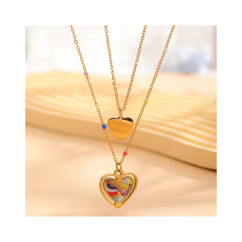 Colorfu Pintura A Óleo Amor Coração Aço Inoxidável Dupla Camada Colar 24K Banhado A Ouro Coração Pingente Colar Para As Mulheres